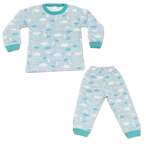 Pijama niño 2 al 8 Paraguitas Gris Interlock Algodon 100%